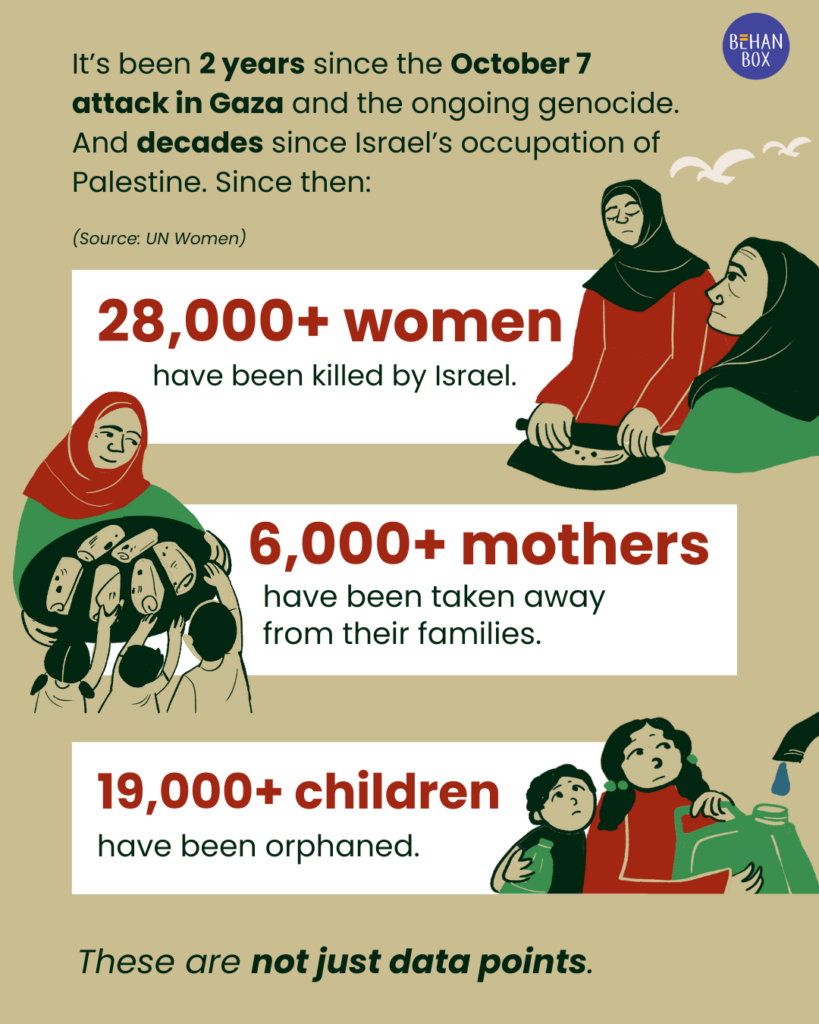 War is a system that consolidates power and sustains the military-industrial complex. And from Palestine to Kashmir, women and gender minorities bear the brunt of conflict, in deaths, displacement, care, and survival.