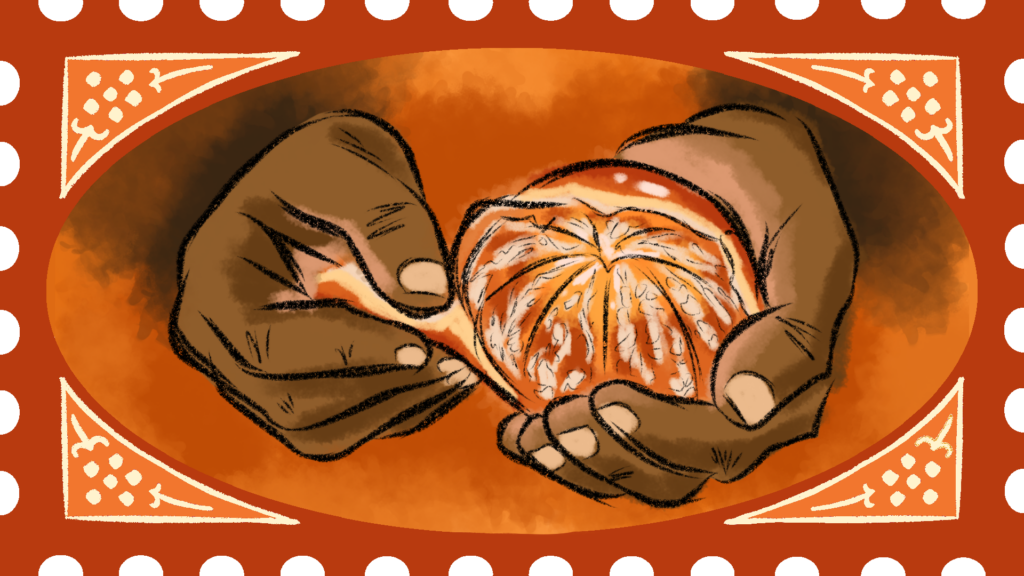 It doesn’t have to be oranges. A memory revisits from a decade ago (algorithms have infiltrated my brain to 2016/2026 nostalgia): sitting on the terrace at my grandparents’ house, nani shelling peanuts and slicing guavas, us cousins following her lead, a simple feast. I don’t remember the conversations—maybe an aunt said something, someone’s marriage, eat more/eat less—but I remember using my hands, looking up, looking down, looking around.