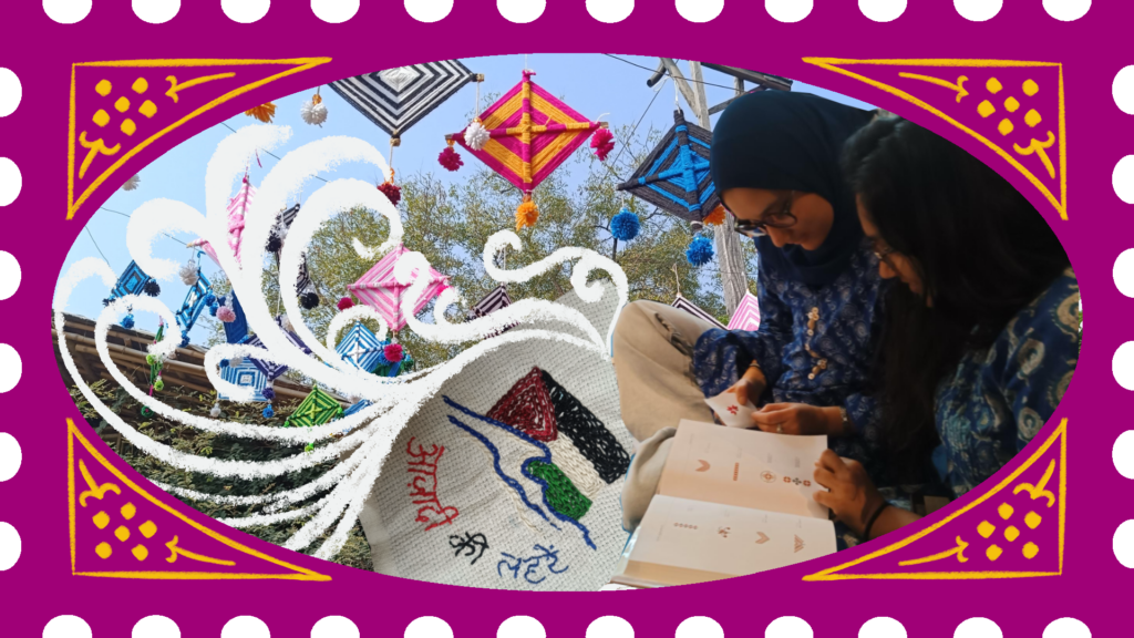In and out, in and out, cross over the top… my fingers worked slowly but surely to guide the twice-looped, crimson thread through the checkered fabric. Around me, an exciting hum of crickets, children playing badminton, and juicy gossip flooded my ears while the sky turned a stunning shade of salmon pink and yellow between the trees in Munirka park. It was the perfect place to stitch together a reminder of love, possibilities and freedom for a dear friend.