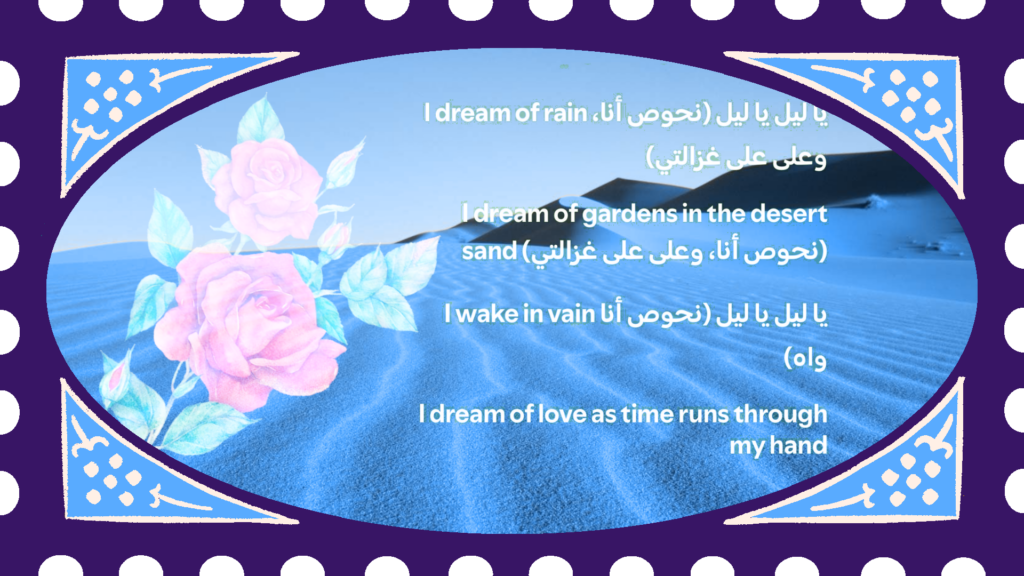 Cheb Mami’s voice is most of it. He does the thing the best ghazal singers do where you can’t tell whether the feeling is sacred or romantic and it doesn’t matter. I know that register from somewhere older than pop music. My body recognises it before my brain catches up. The Arabic lines aren’t subtitled or footnoted. You either feel them or you don’t. I do.